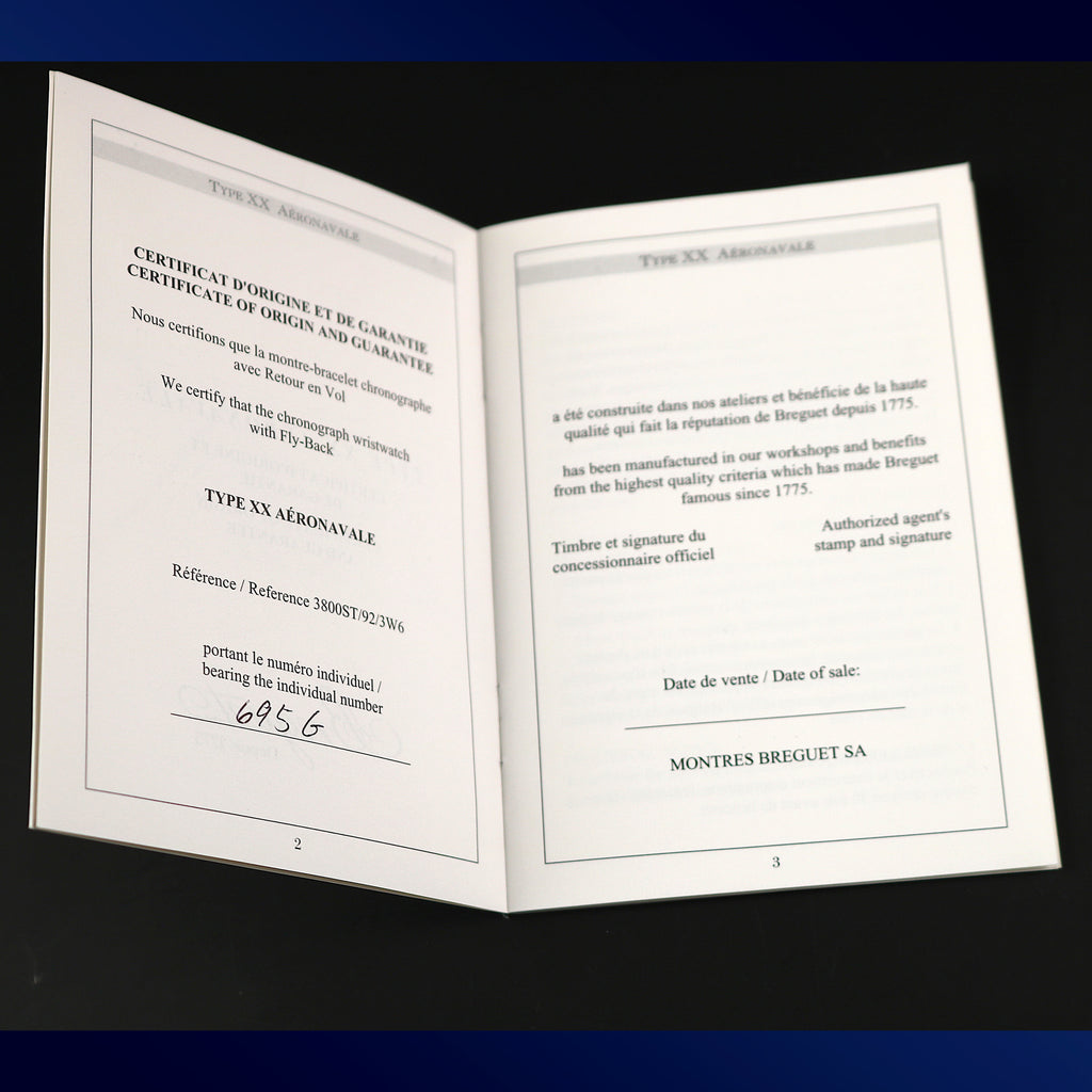 Breguet Pilot Aeronavale Type XX 3800 – Ref B3800BA-92-1W6 – 18K YG – 1995 – Full Set