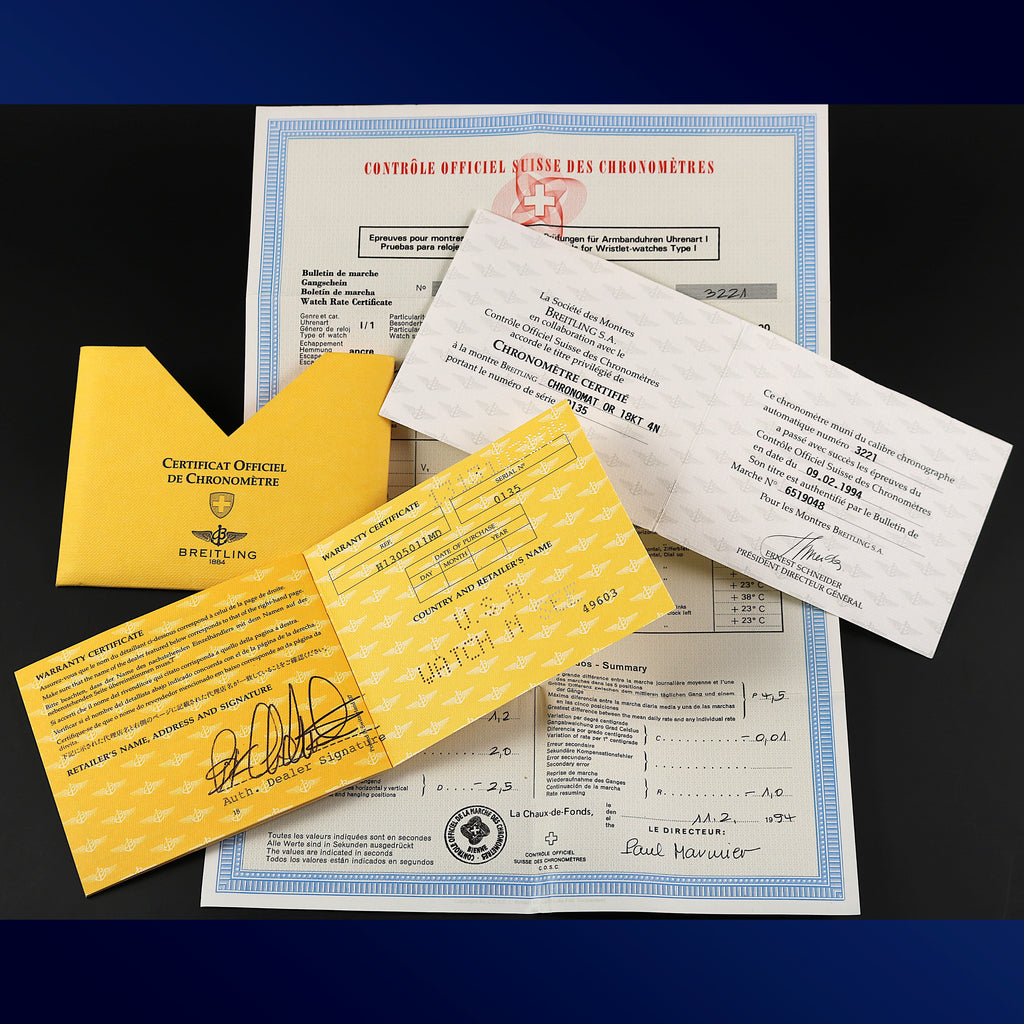 Driven by an automatic movement with calibre Breitling 13 based on the well-known ETA Valjoux 7750, 25 jewels, 28,800 A/h and 42 hours of power reserve.