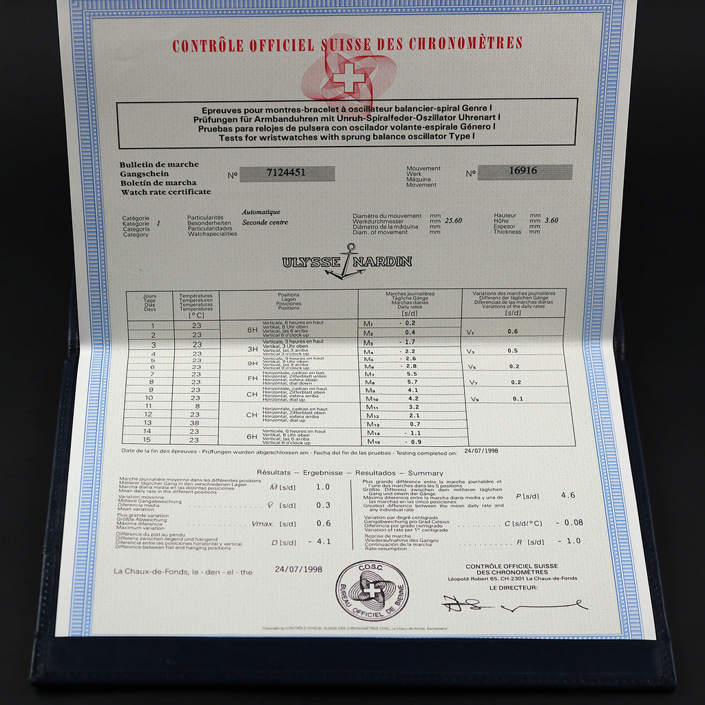 Ulysse Nardin 1846 Marine Chonometer COSC Ref 263.22 – Full set