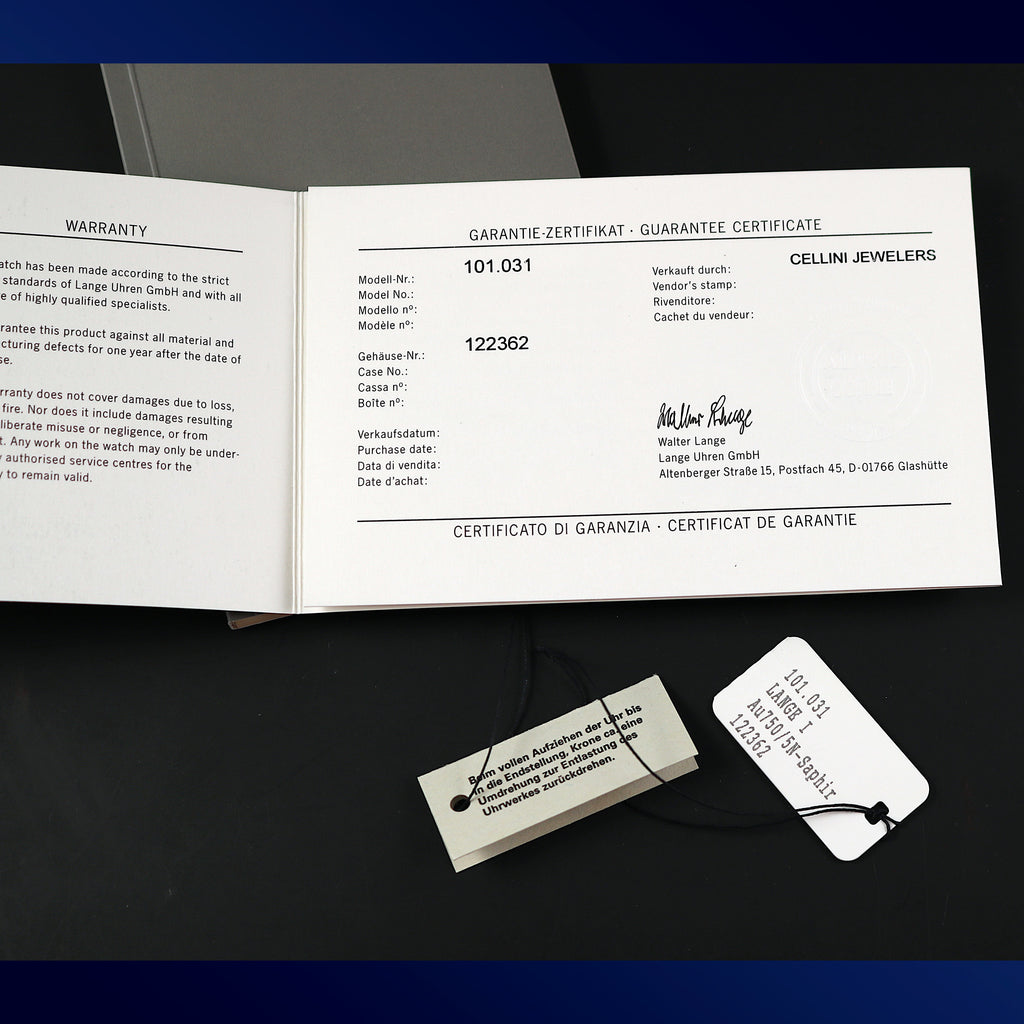 A Lange & Sohne – Lange 1 with Ref 101.031 in Pink Gold – Cal 901.0 - FULL SET