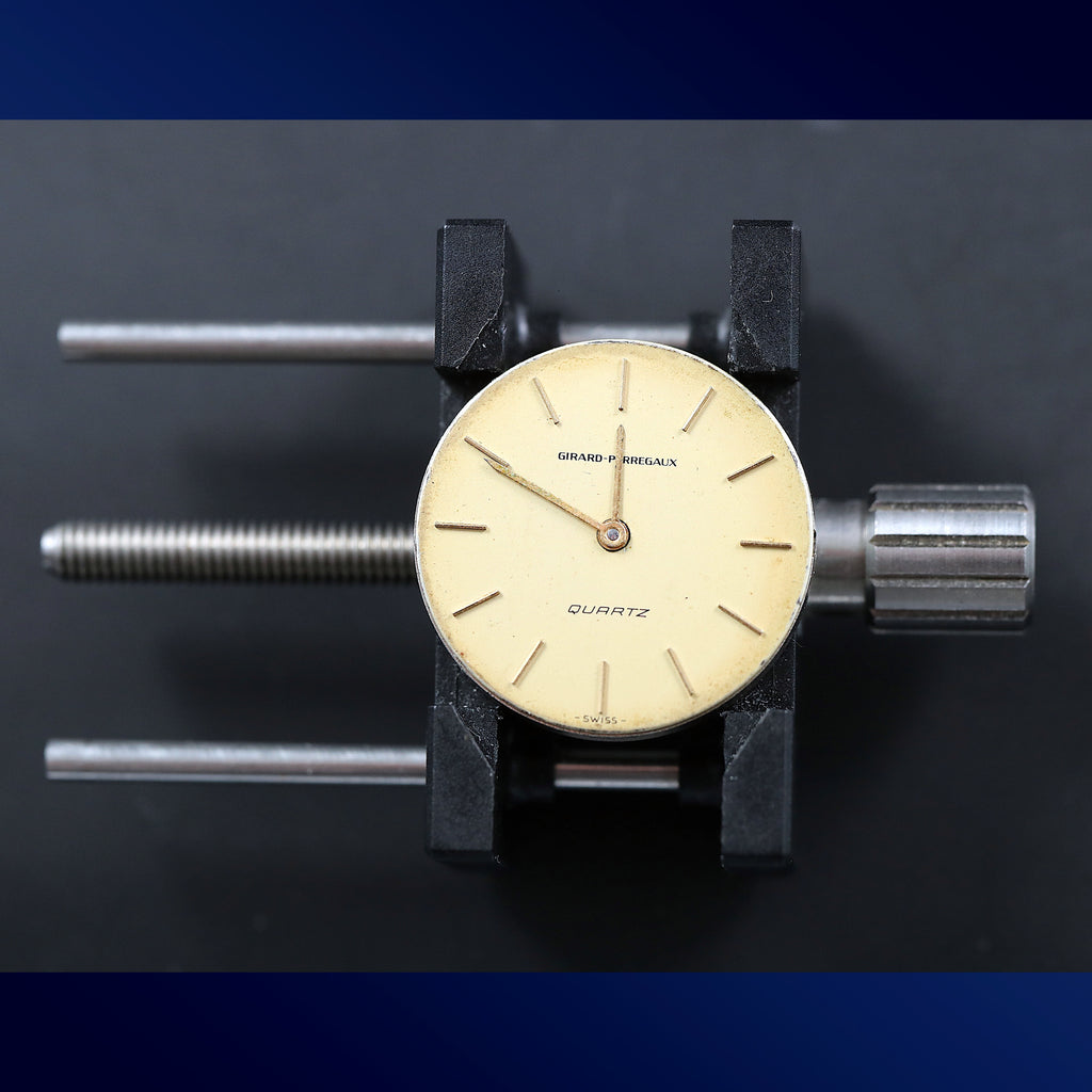 Girard Perregaux champagne dial with gold batons for each hour. At 6 o’clock is engraved “quartz”. It is a Swiss model. It comes with a gold crown. It is a quartz ETA movement with 7 jewels but I do not know the caliber number. All original.