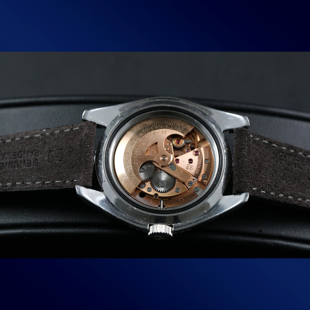 Automatic movement with caliber 550 with 17 jewels, a frequency of 19,800 A/h. The caliber 550 was for the US market. The movement is 25579069 and date the watch to 1967.