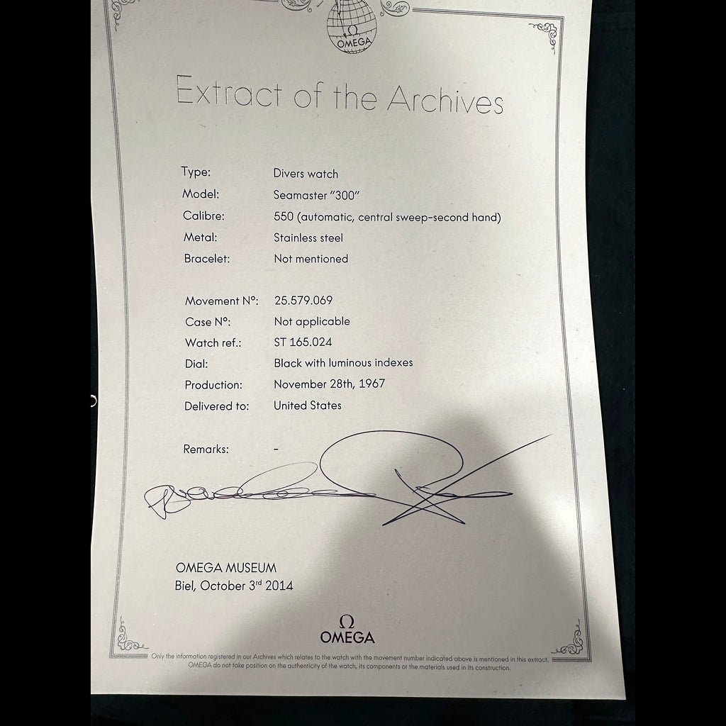 Omega Seamaster 300 - Ref 165.024 – 1967 – Cal 550 - Extract